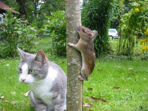 La souris: "pourvu que se mechant minou ne me trouve pas"